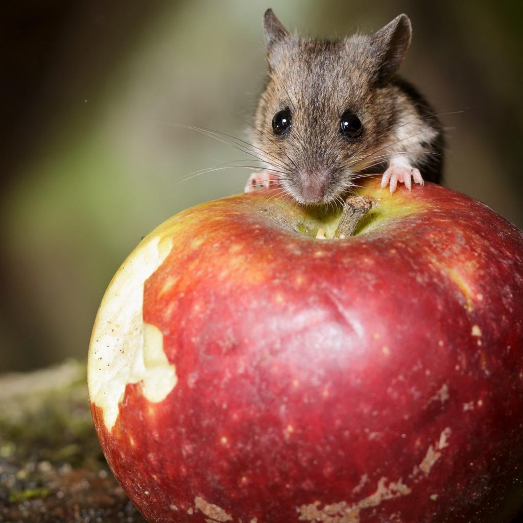 Wallpaper A little mouse sits on a big red apple