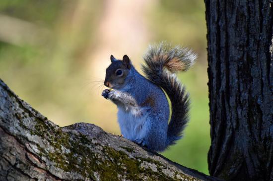 Wallpaper Small squirrel with walnut on the tree