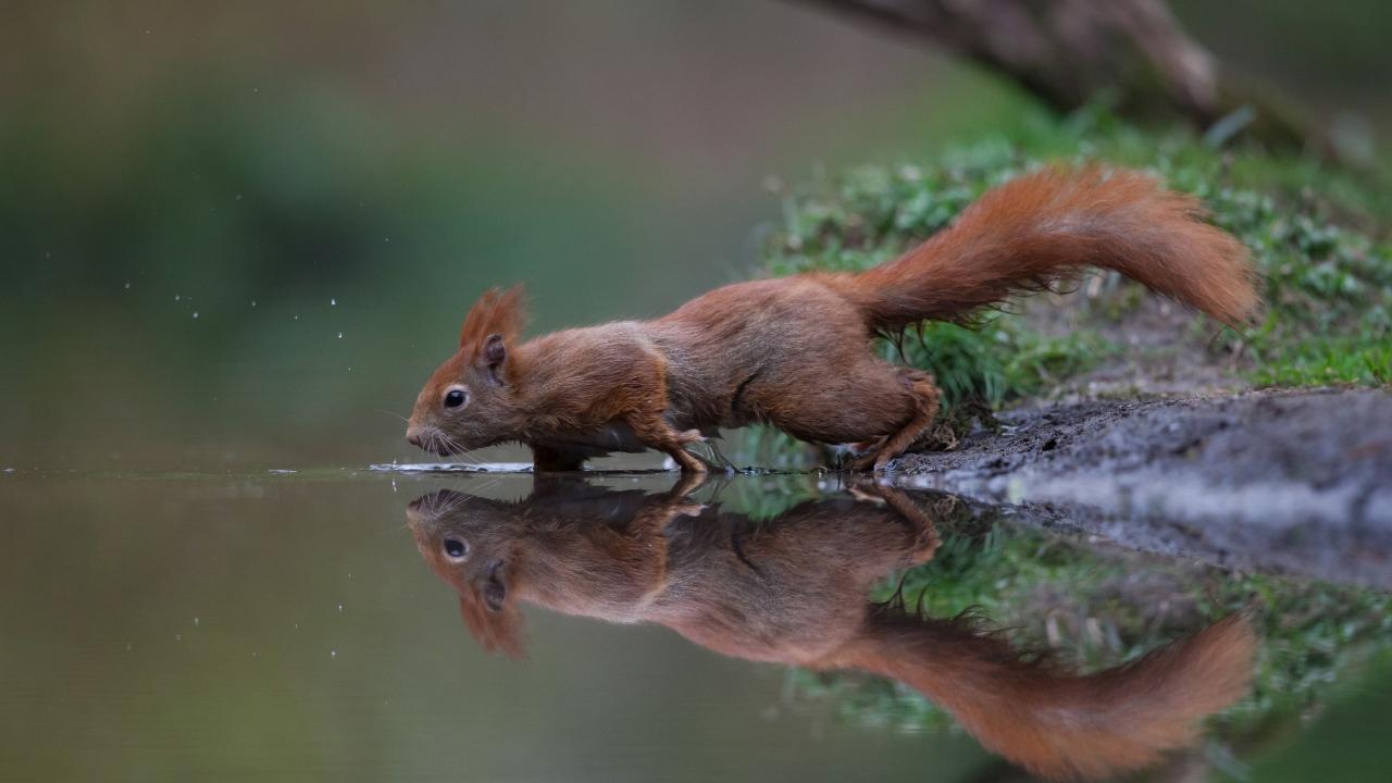 Wallpaper A small red squirrel near the water