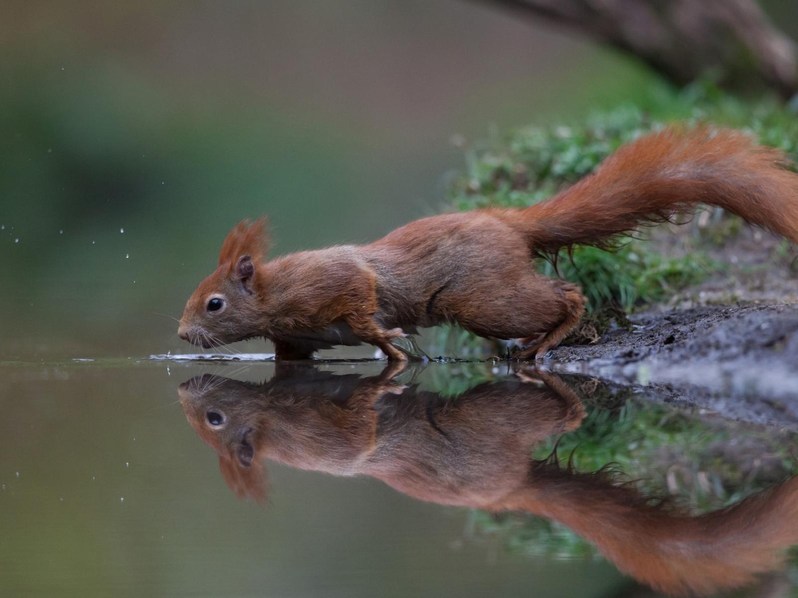 Wallpaper A small red squirrel near the water