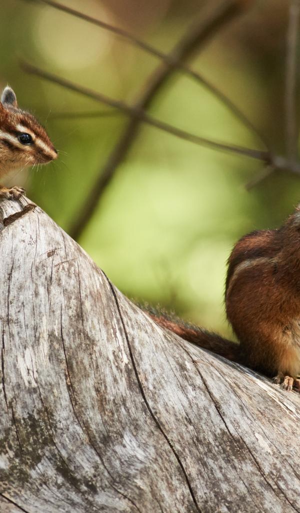 Wallpaper Two little chipmunks are sitting on a dry tree