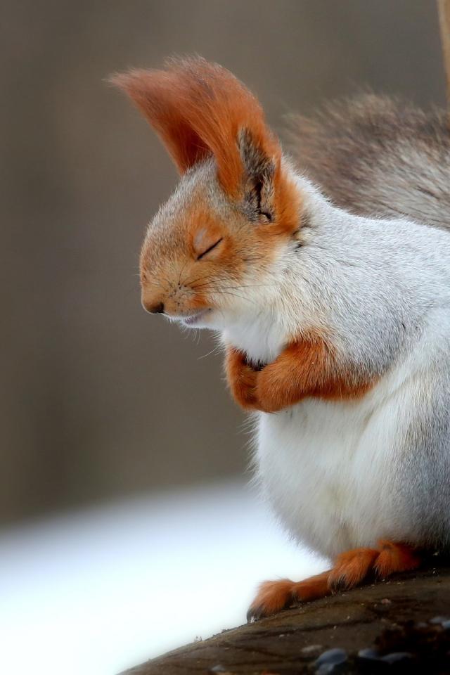 Wallpaper Fluffy gray squirrel sleeping on a branch