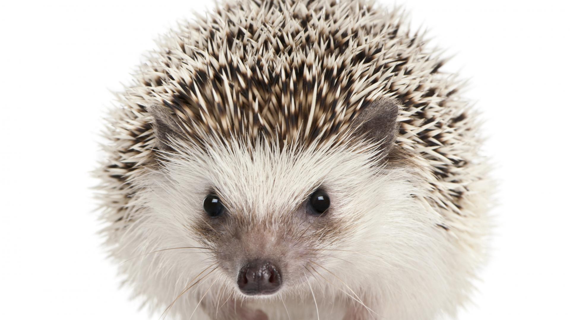 » Wallpaper Funny hedgehog closeup on a white background