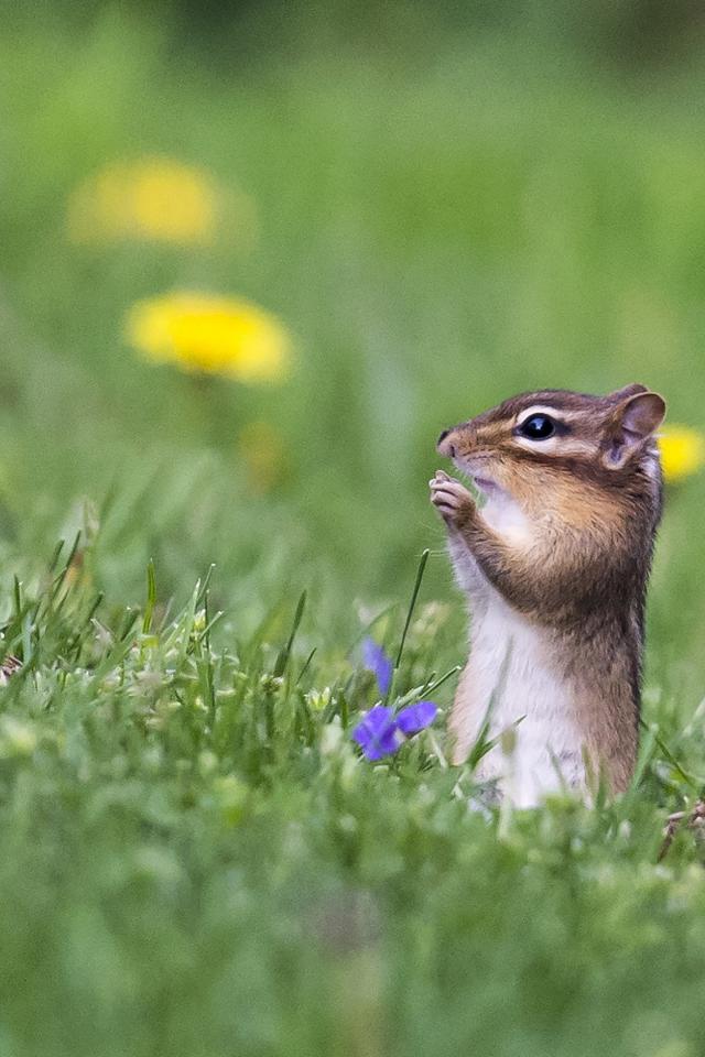 Wallpaper A small chipmunk sitting in the green grass