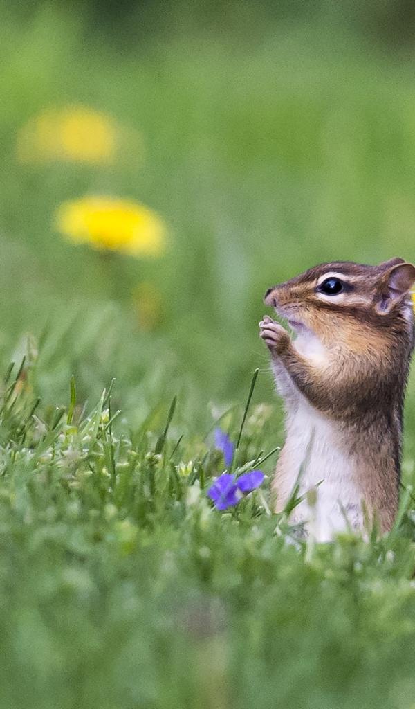 Wallpaper A small chipmunk sitting in the green grass