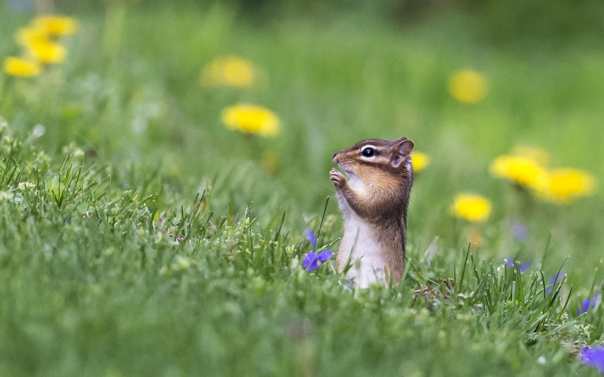 Wallpaper A small chipmunk sitting in the green grass
