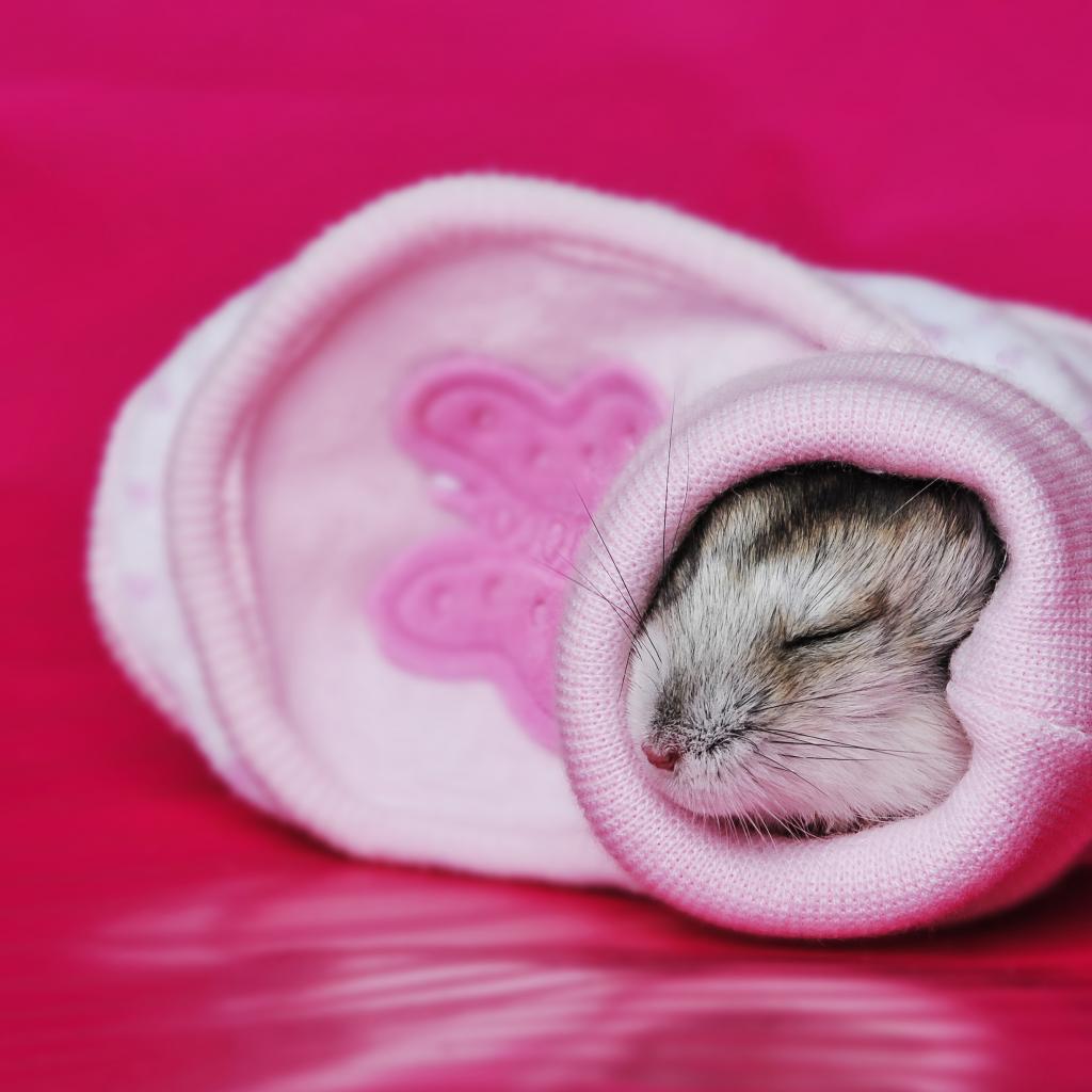 Wallpaper A little cute hamster is sleeping in a pink sock