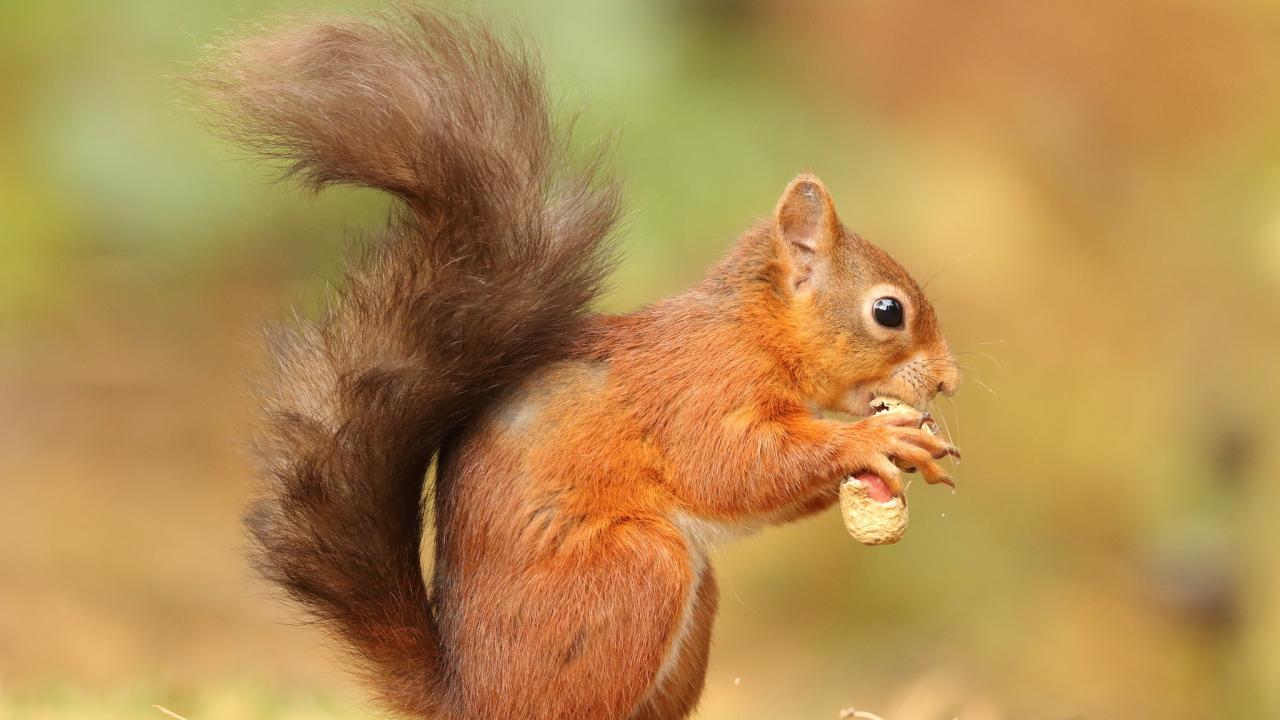 Wallpaper A small red squirrel with a nut in its paws