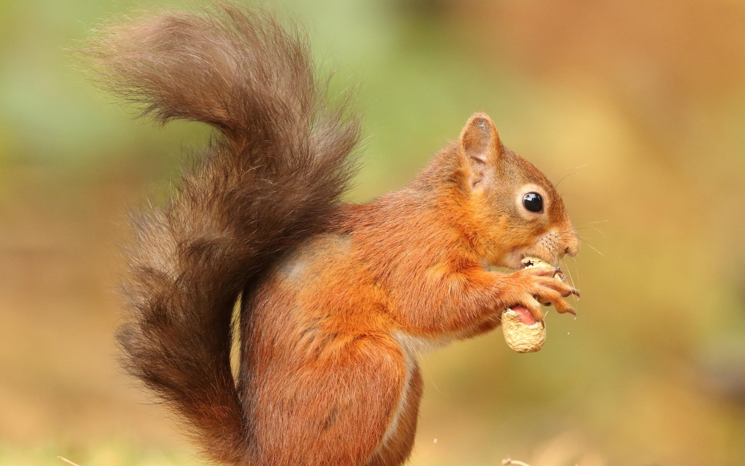 Wallpaper A small red squirrel with a nut in its paws