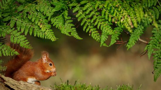 Wallpaper Red squirrel sits under a green branch