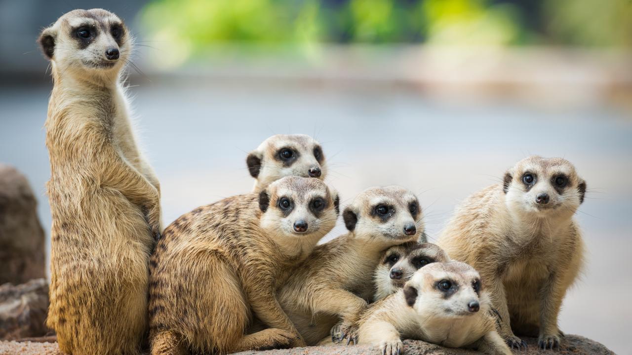 » Wallpaper A family of cute meerkats rest on the stone
