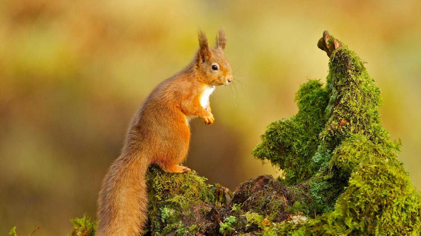 Wallpaper A large red squirrel sits on a mossy snag