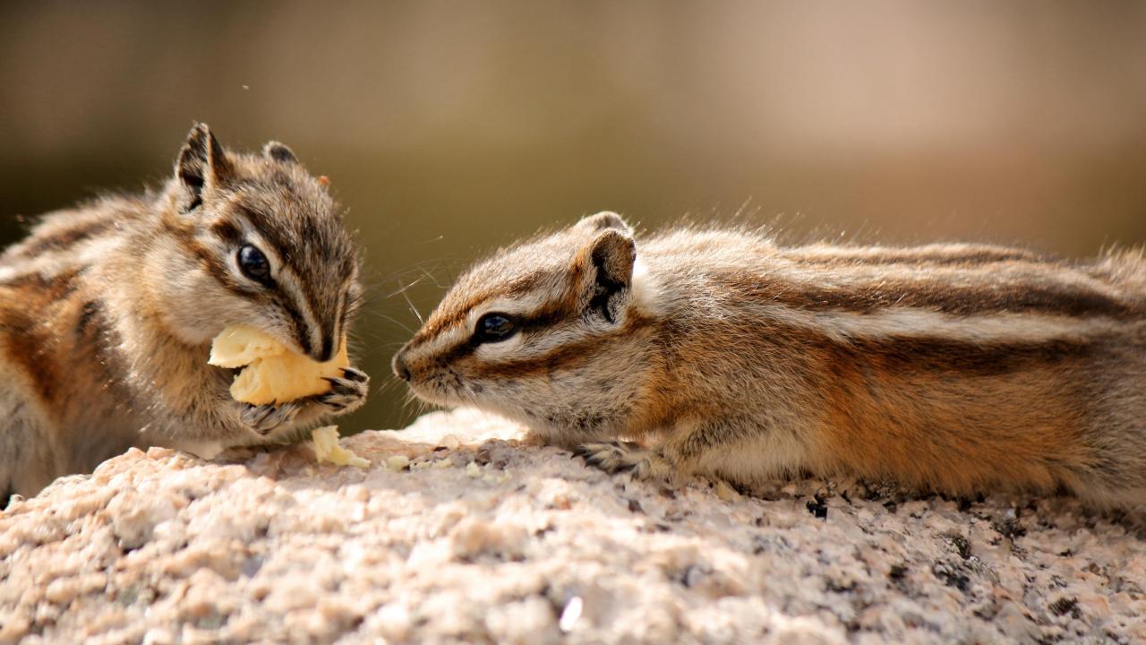 Wallpaper Two cute chipmunk eat biscuits