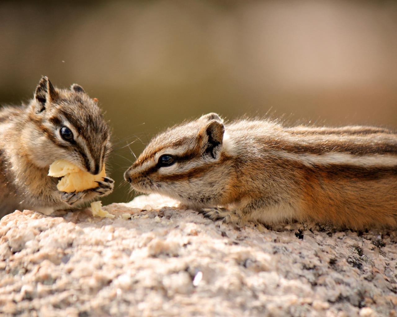 Wallpaper Cute chipmunk nibbling seeds on a tree