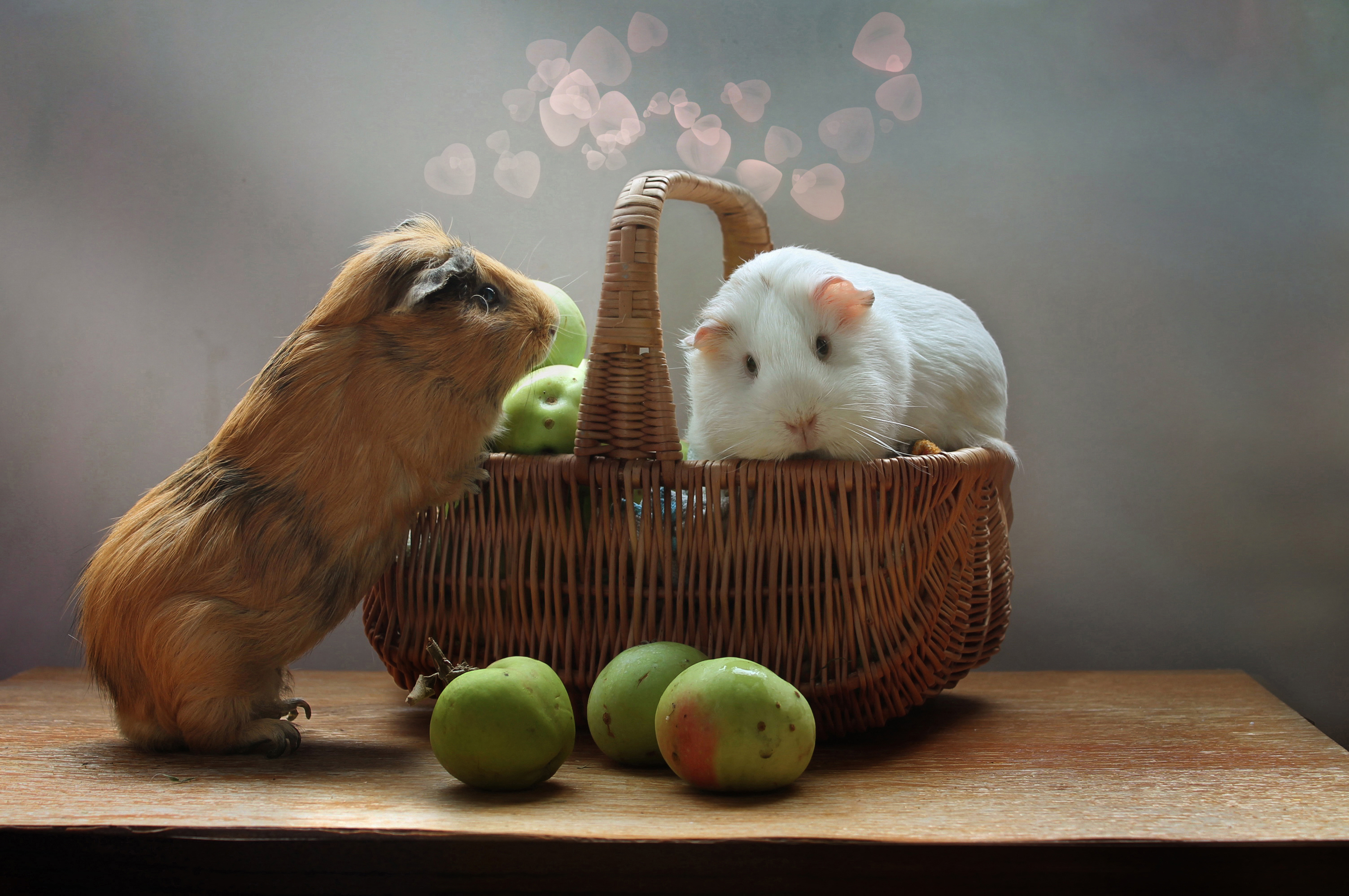 Wallpaper Two guinea pigs in a basket with apples