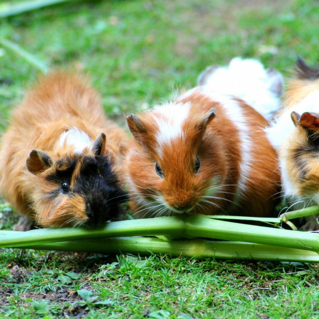 Wallpaper Three guinea pigs gnaw green grass