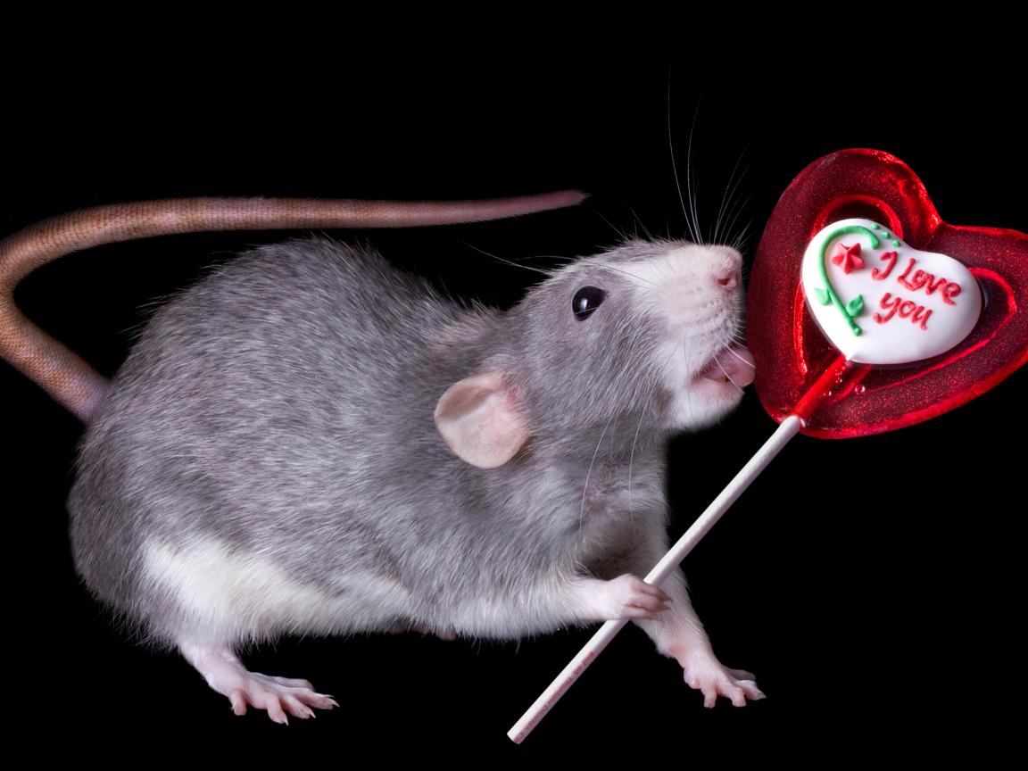 Wallpaper Gray rat with a lollipop on a black background