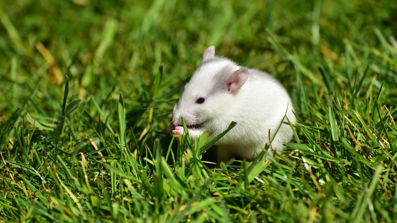 » Wallpaper White mouse in the green grass