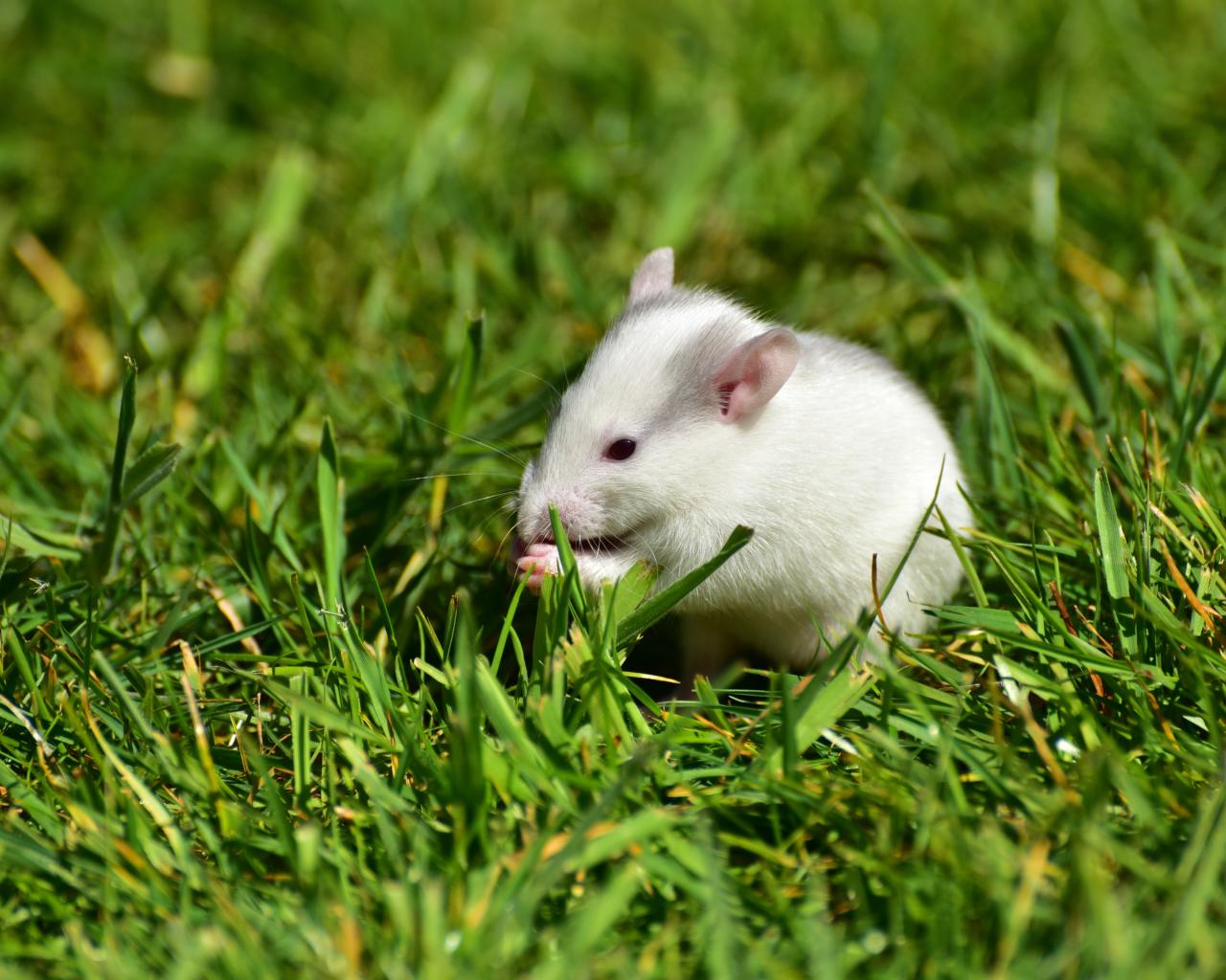 » Wallpaper White mouse in the green grass