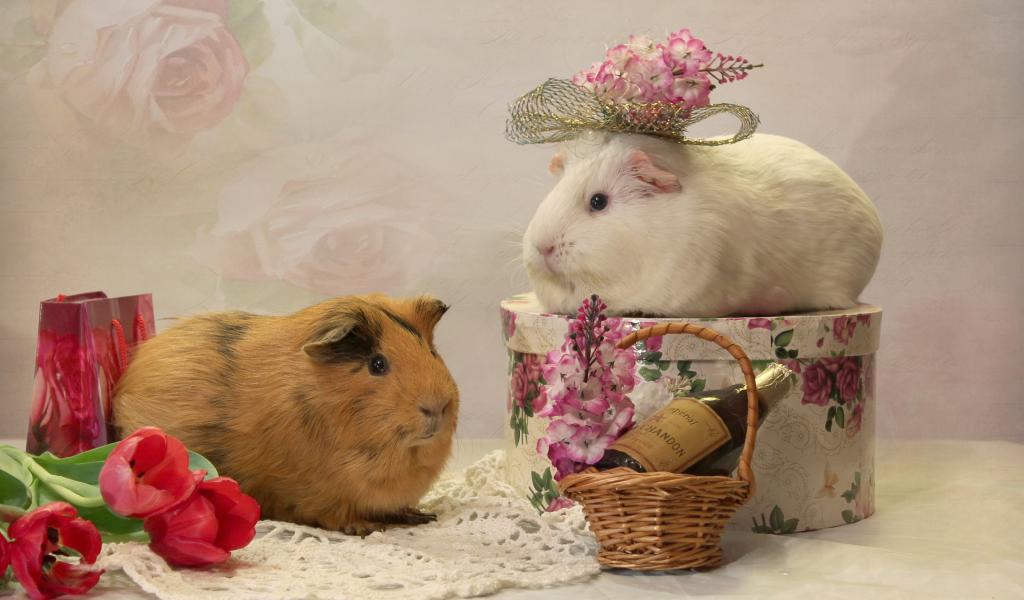 » Wallpaper Two guinea pigs with flowers