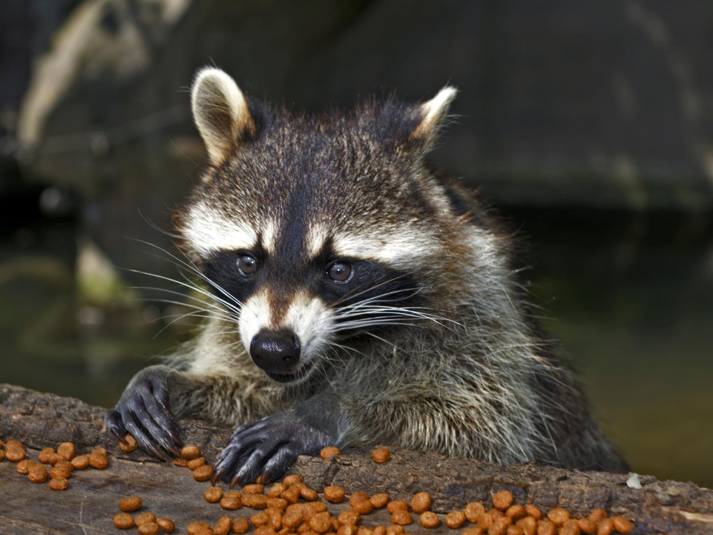 » Wallpaper Raccoon gnaws dry food