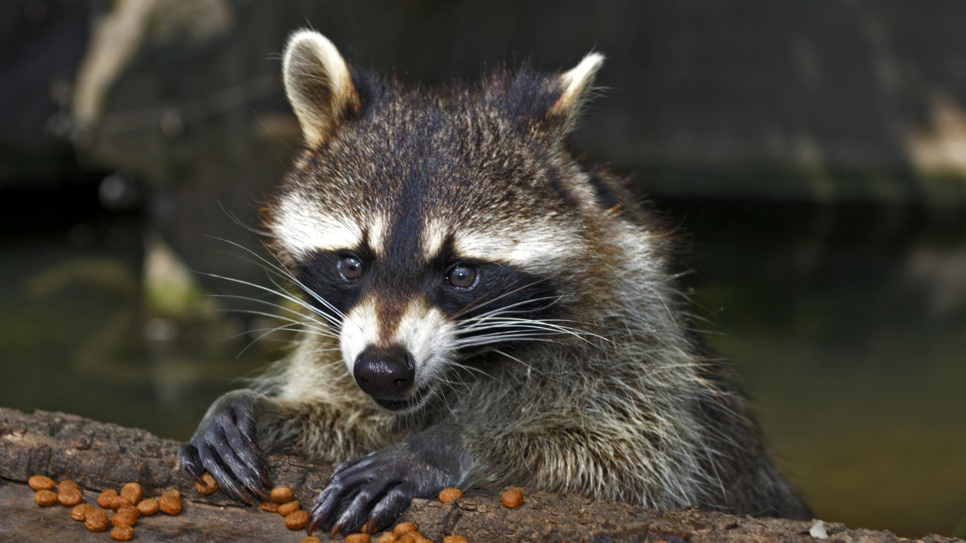 Wallpaper Raccoon gnaws dry food