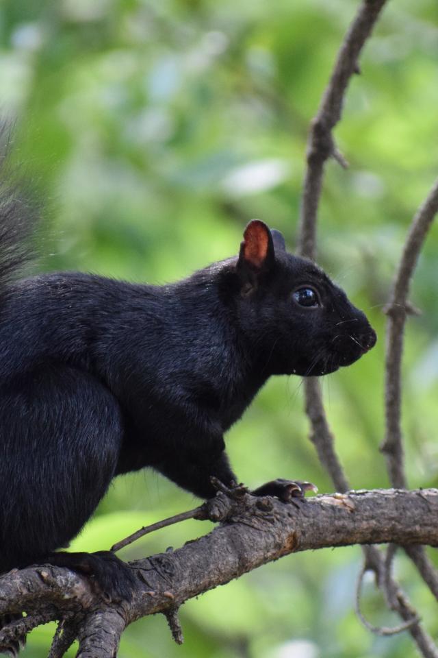 Wallpaper Black squirrel sits on a tree branch