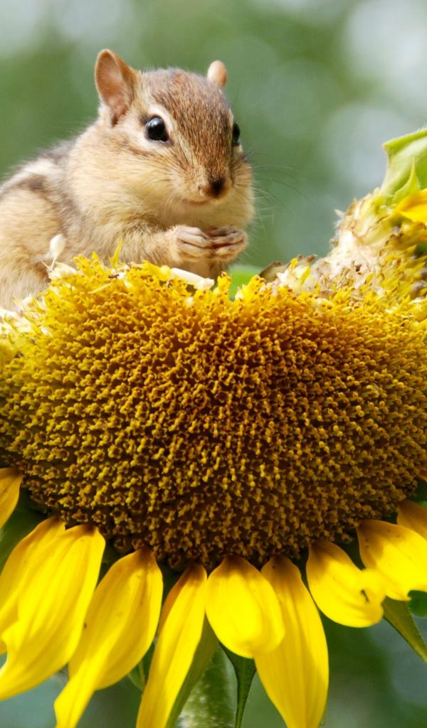 » Wallpaper Chipmunk gnaws yellow sunflower