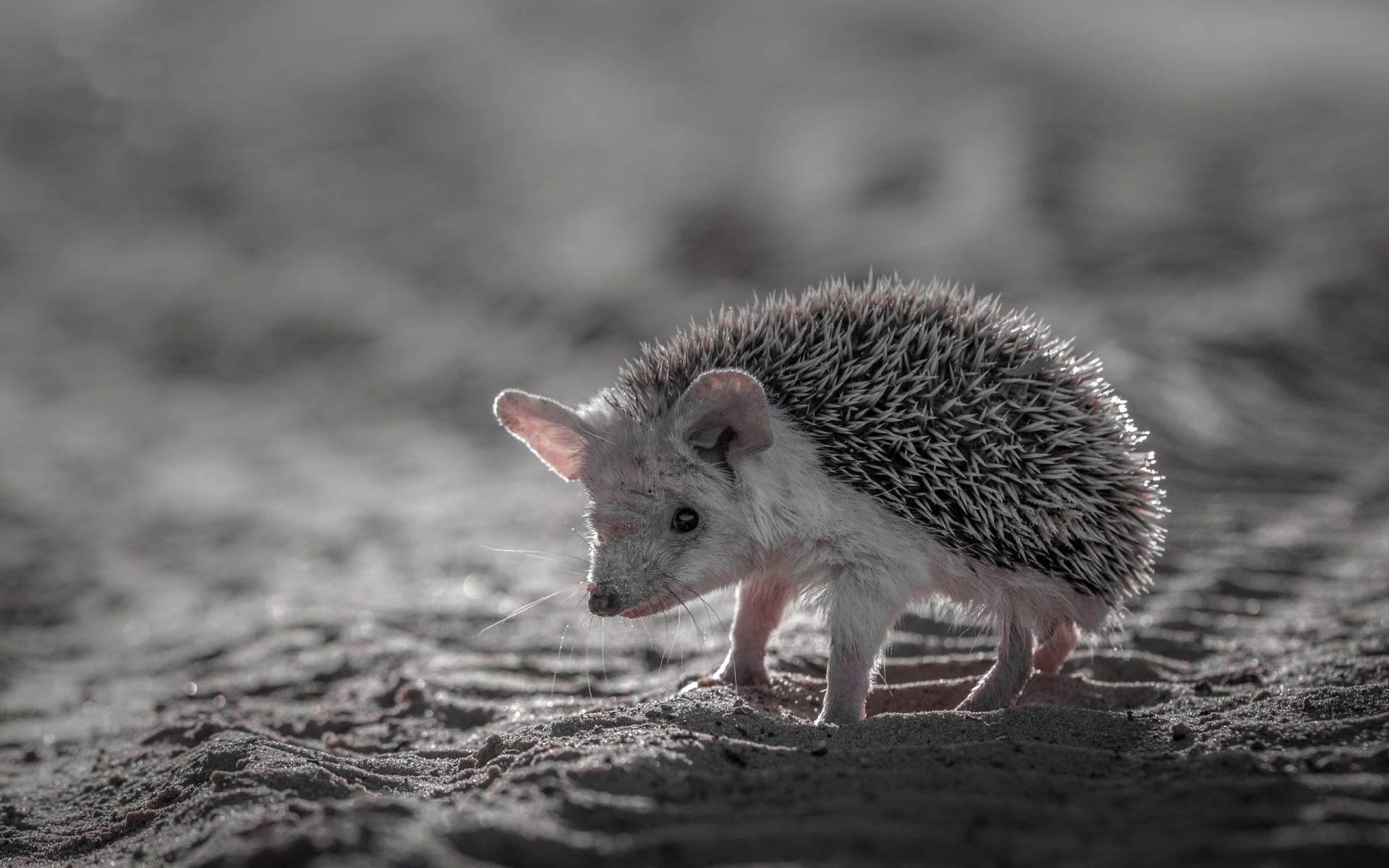 Wallpaper Spiny hedgehog with big ears on sand