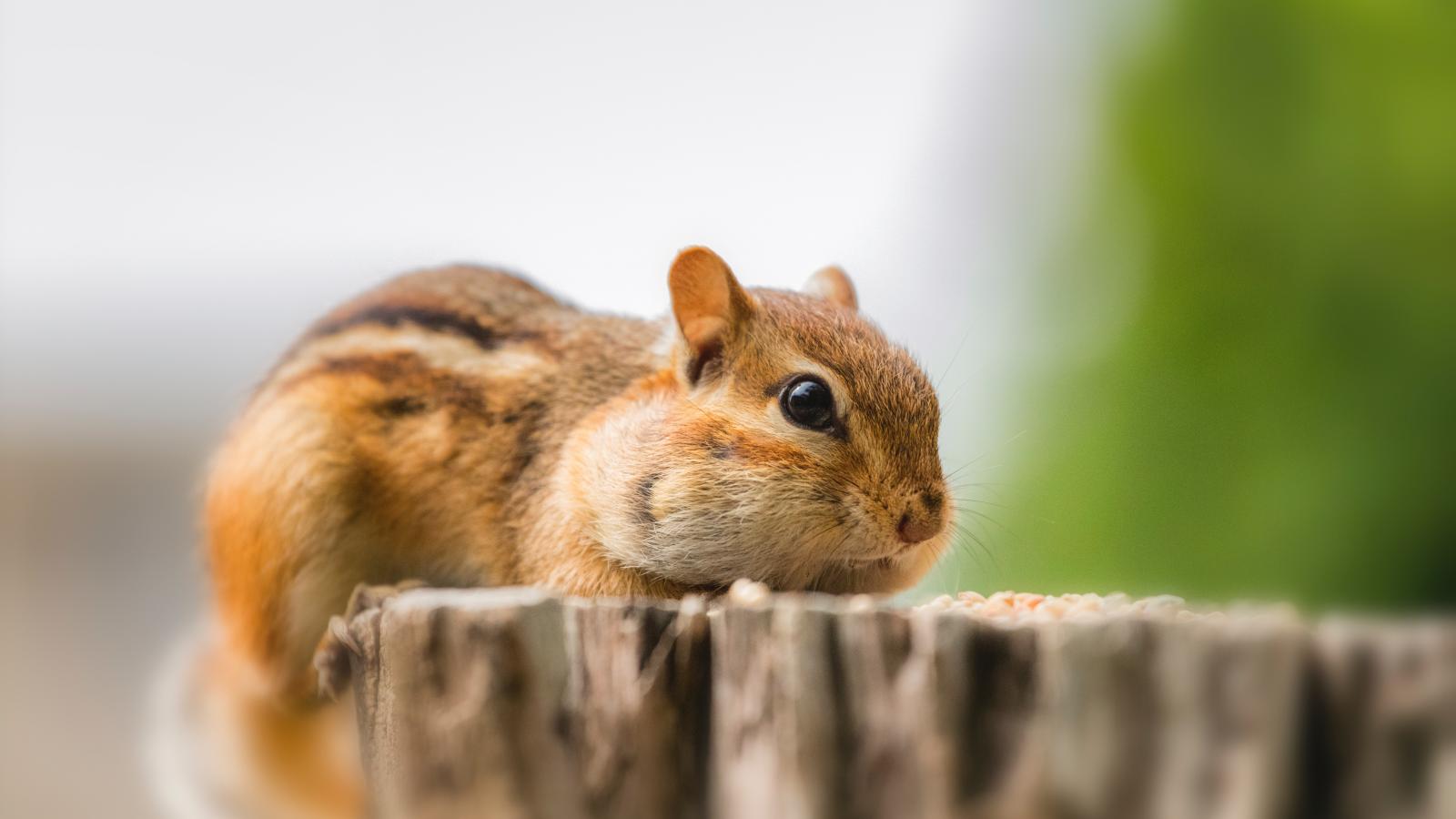 » Wallpaper Little Red Chipmunk Eats on a Stump