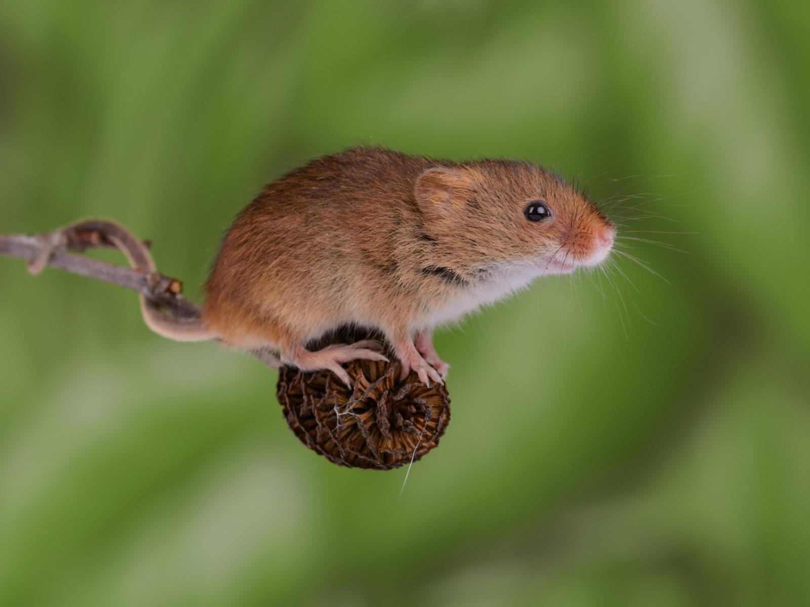 Wallpaper Little mouse is sitting on a branch with a cone