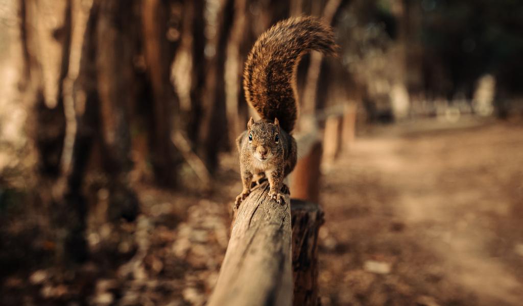 Wallpaper Squirrel with a fluffy tail on a wooden branch