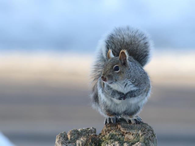 Wallpaper Fluffy gray squirrel sitting on a stone