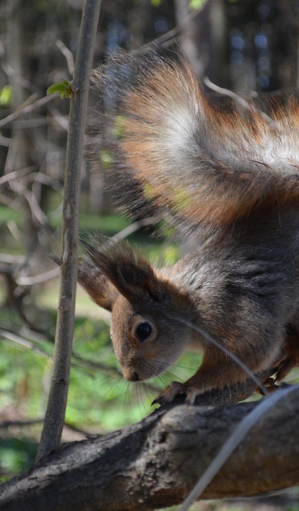 Wallpaper Big red squirrel sits on a tree branch