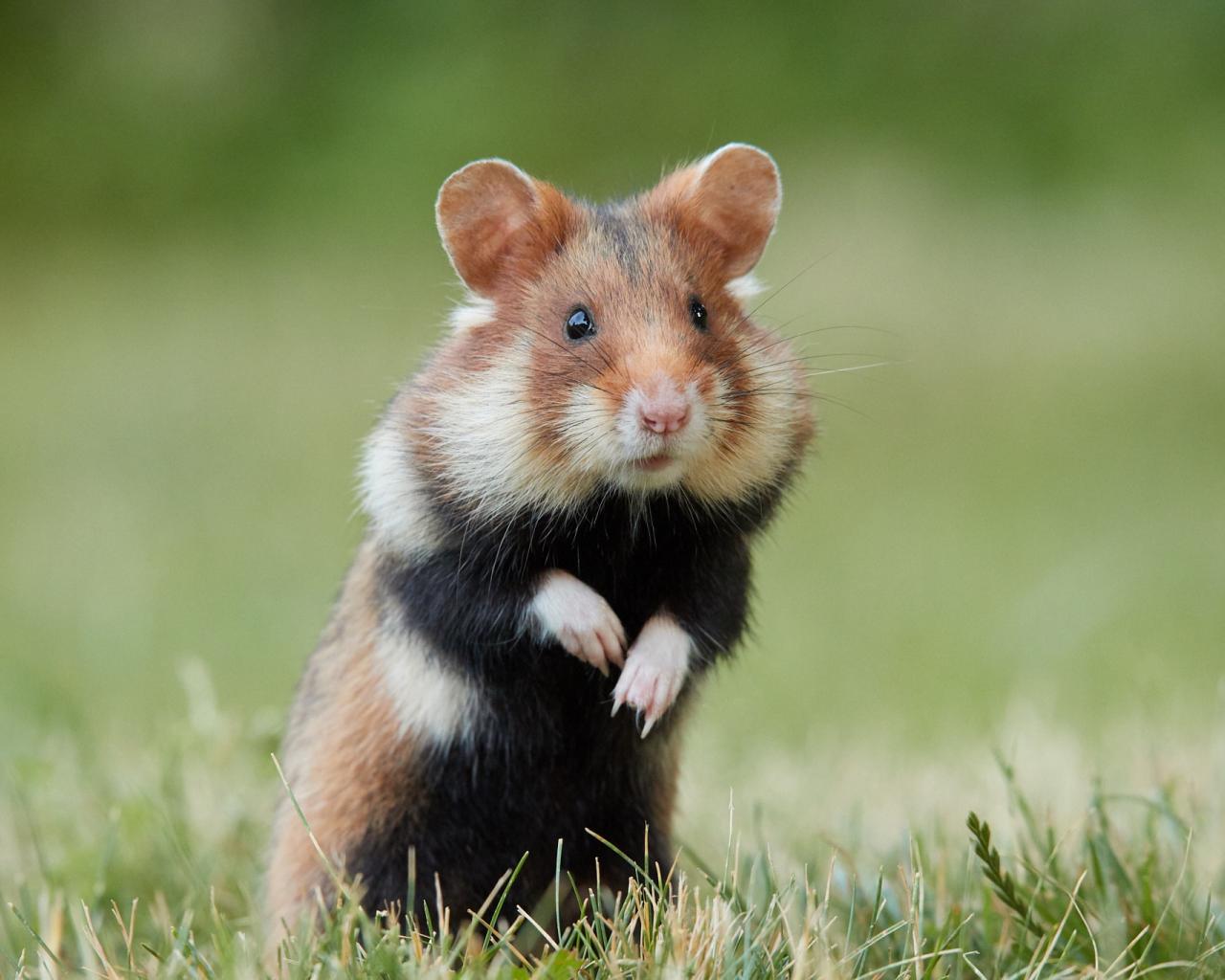 » Wallpaper Big hamster stands on the grass