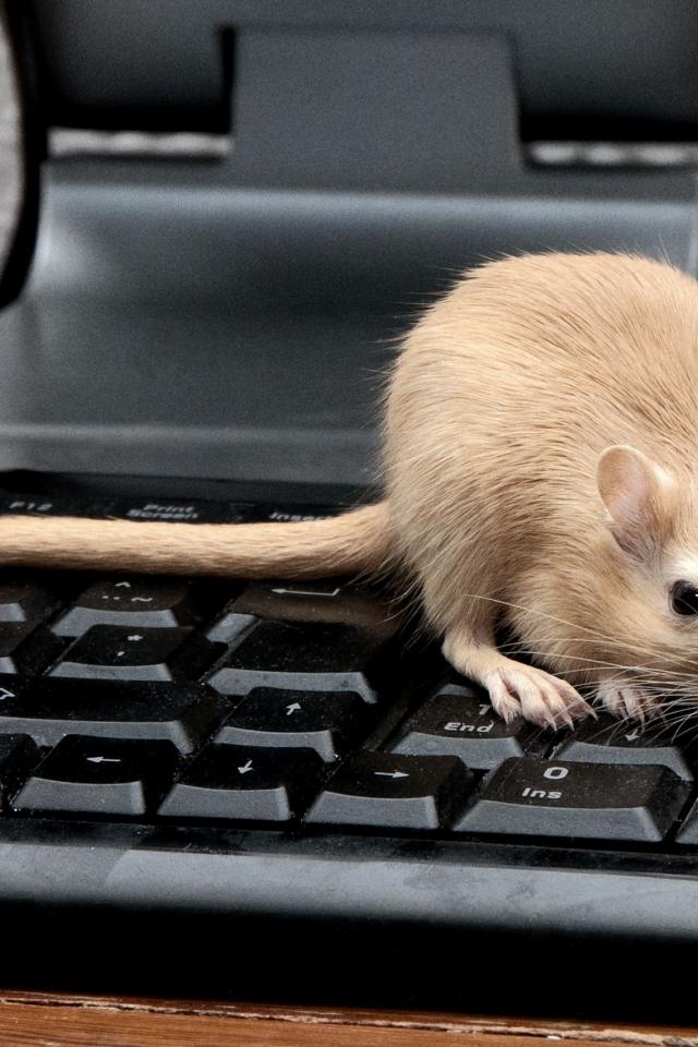 » Wallpaper Red rat sitting on black keyboard