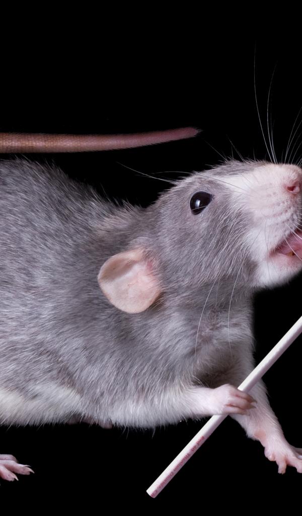 Wallpaper Funny rat with a lollipop on a black background