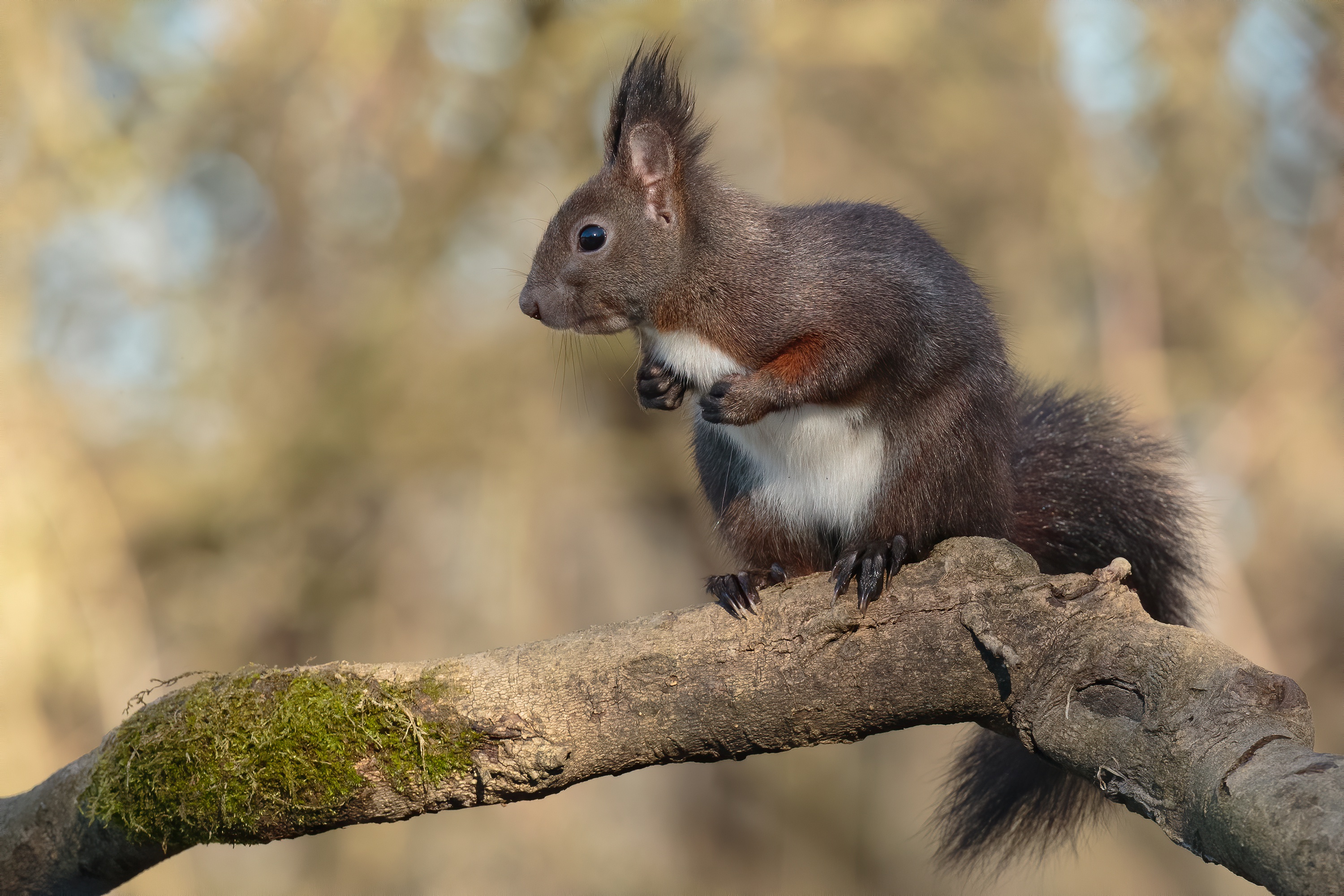 Wallpaper A little fluffy squirrel sits on a branch