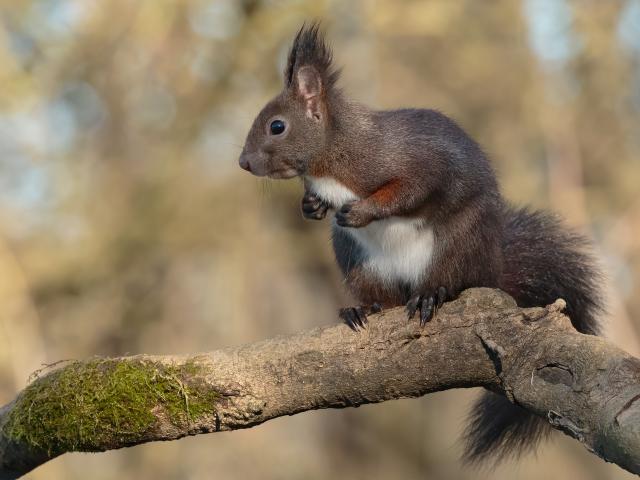 Wallpaper A little fluffy squirrel sits on a branch