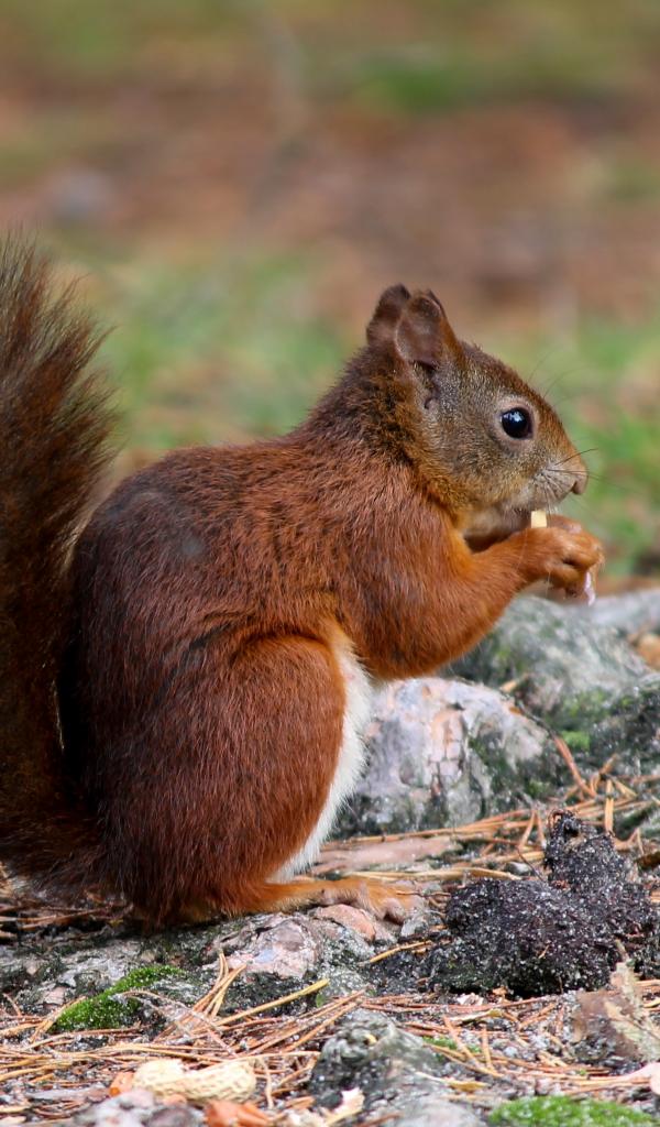 Wallpaper Fluffy red squirrel sits on a stone