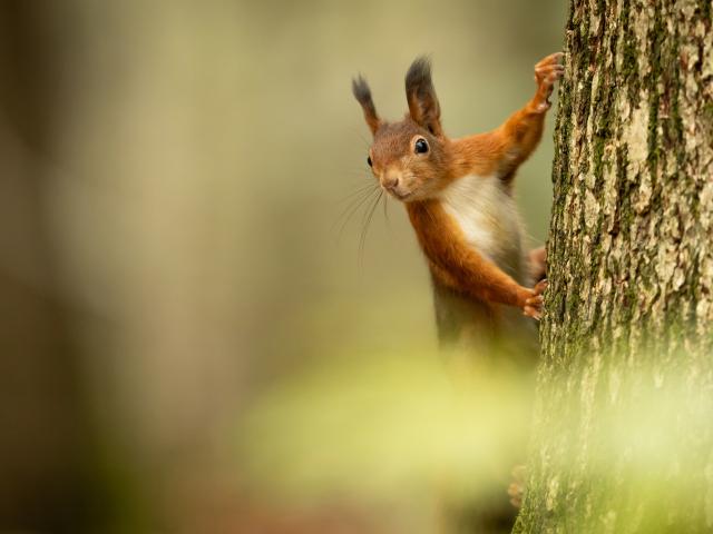 Wallpaper Fluffy cute redhead squirrel hanging on a tree.