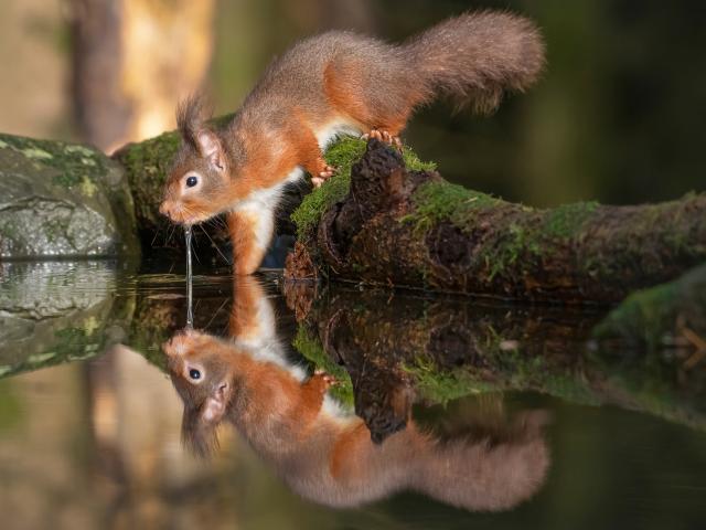 » Wallpaper Fluffy red squirrel drinks water