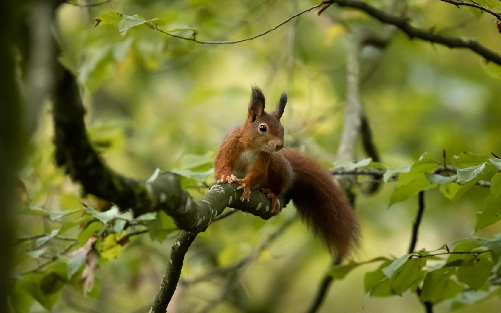 Wallpaper Fluffy tail of a fast squirrel sitting on a tree