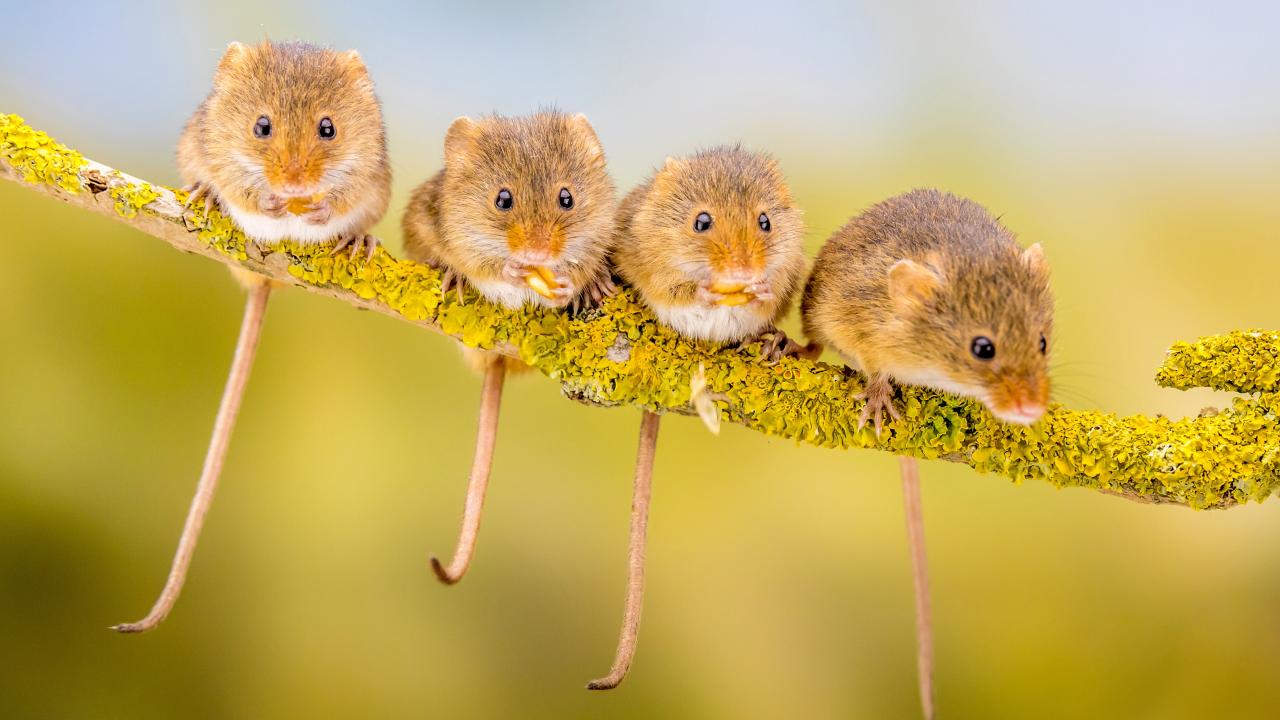 Wallpaper Four little mice sit on a branch