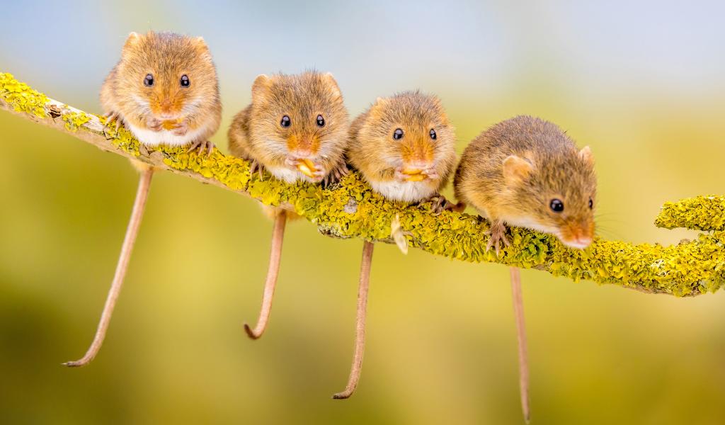 Wallpaper Four little mice sit on a branch