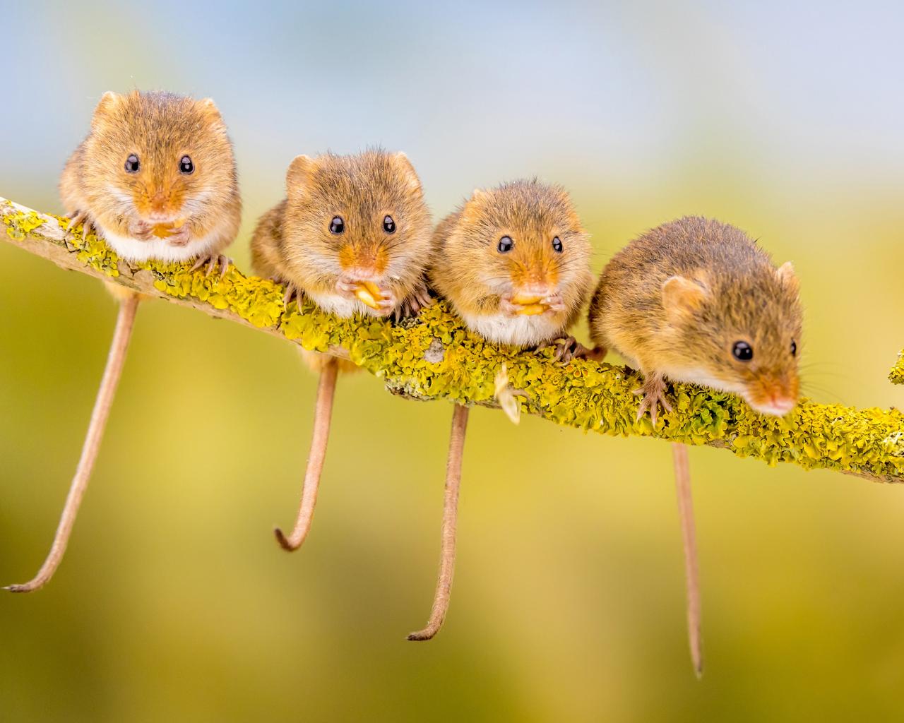 Wallpaper Four little mice sit on a branch