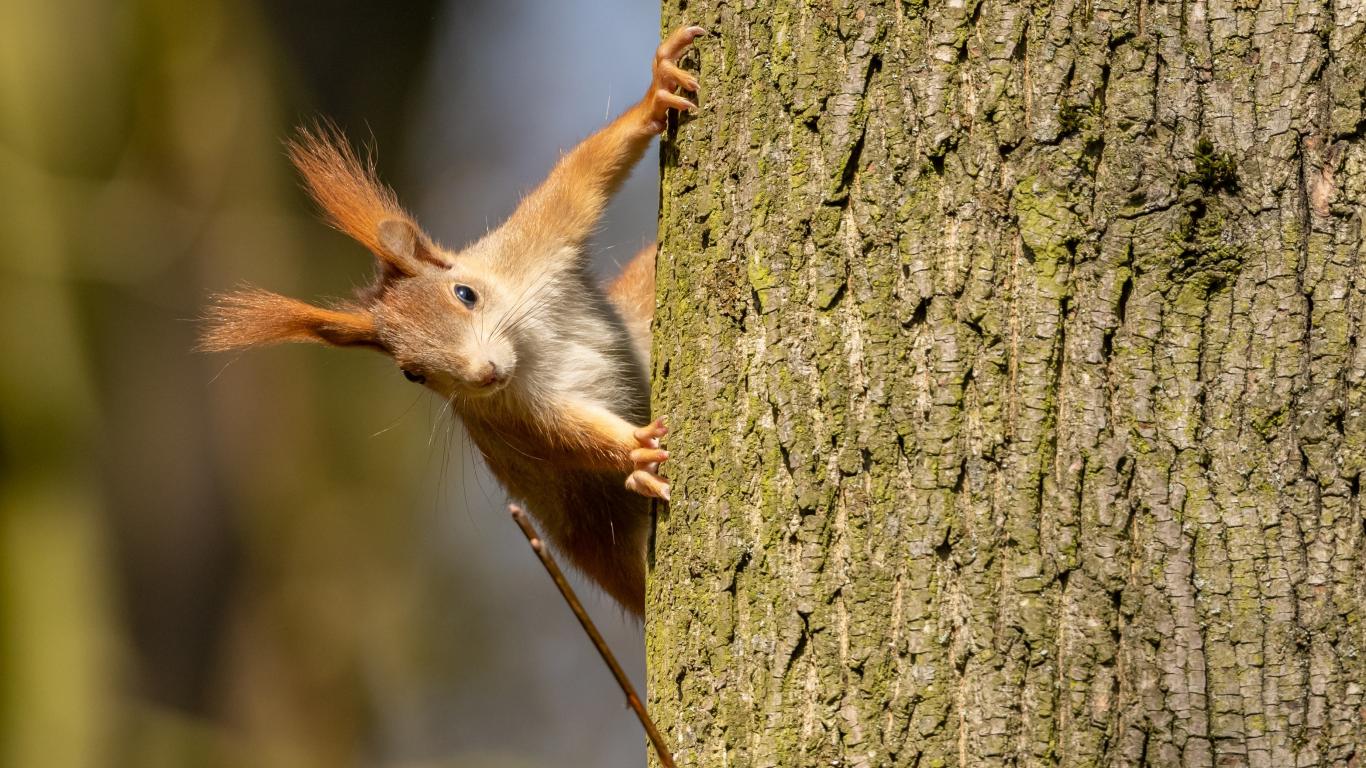 Wallpaper Red-haired funny squirrel hanging on a tree
