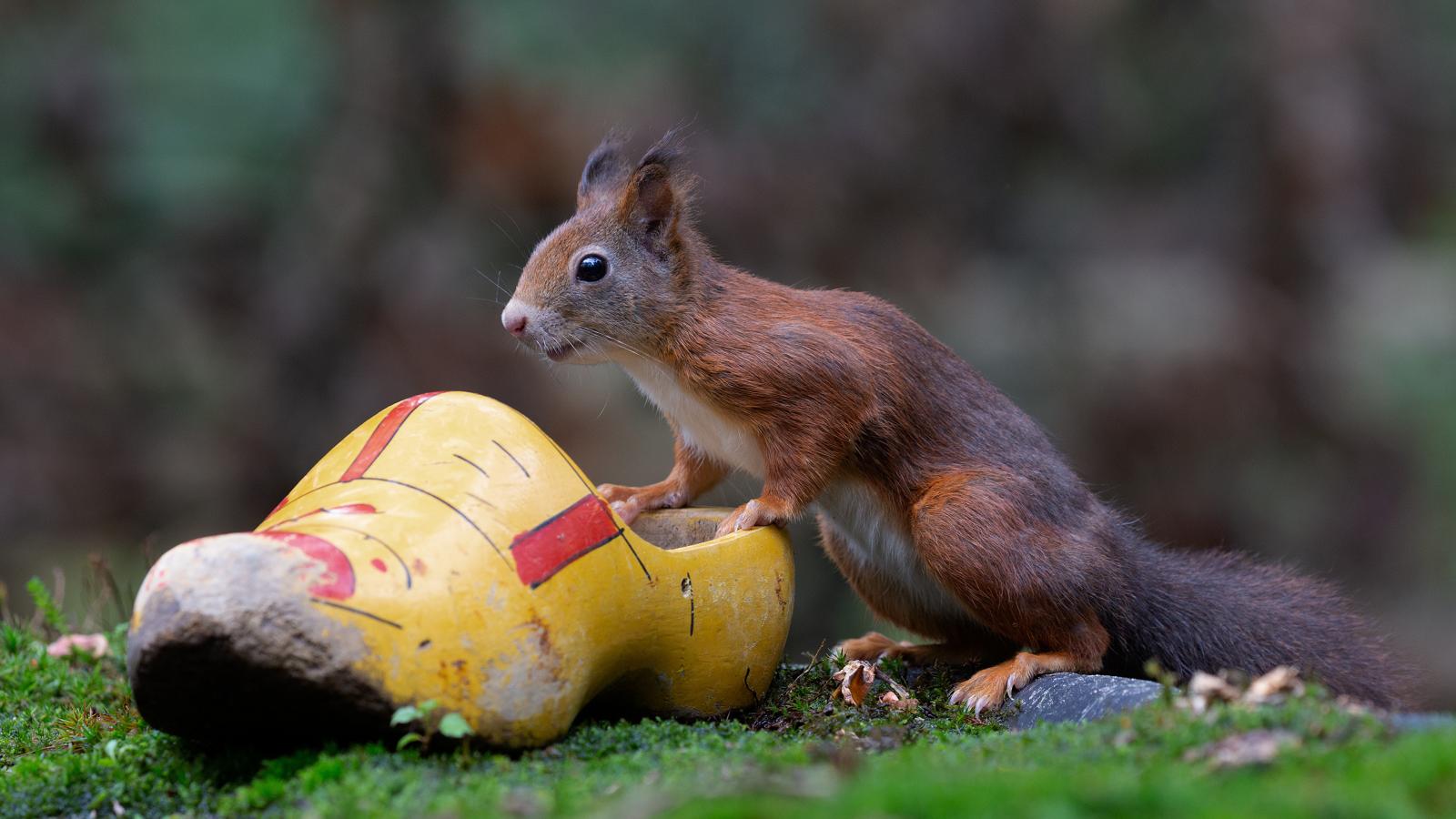 Wallpaper Little red squirrel with garden decor