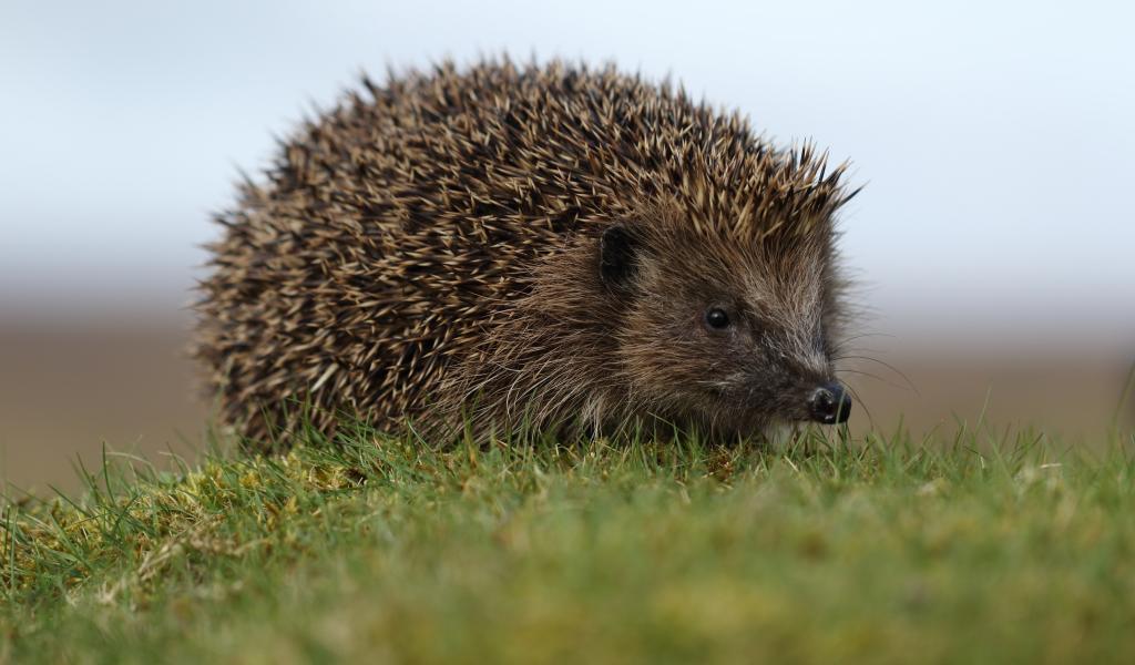 Wallpaper Big prickly hedgehog on green grass