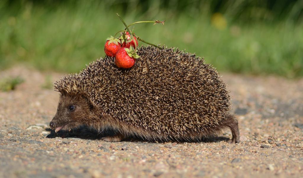 Wallpaper Spiny hedgehog with cherries on needles